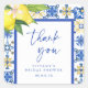 Agregue un encantador toque final a sus favores con esta Etiqueta Cuadrada de Agradecimiento para Despedida de Soltera Limones Azules Mediterráneos. Con vibrantes limones combinados con elegantes patrones de baldosas azules, esta etiqueta aporta un toque fresco y costero a su celebración. Perfecta para sellar bolsas de favores, cajas de regalos o sobres, es una forma elegante y sincera de agradecer a los invitados por compartir su día especial.