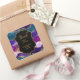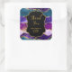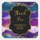 Pegatina Cuadrada Agradecimientos morados y azules de pavo real