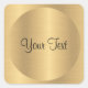 Plantilla elegante en blanco con aspecto metálico dorado falso para sticker redondo clásico.