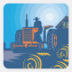 Un granjero en un tractor en la granja. Este diseño parece realmente efectivo para estos Pegatinas