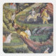 Pegatina Cuadrada Agricultores de aldeas trabajando en abril