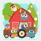 Nuestras camisetas, tazas, bolsas, tarjetas, pacificadores, pegatinas, llaveros, keepsakes, relojes de pared y otros artículos son tan lindos y coloridos, ¡un nuevo giro en la agricultura! Un granero rojo, árboles, un tractor con un vagón lleno de tomates rojos y búhos con maíz, horquillas de pichón y zanahorias.