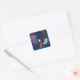 Pegatina Cuadrada Águila calva volando con bufanda y fuegos artifici