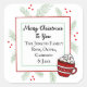 Pegatina Cuadrada Agujas de pino y cacao caliente Feliz Navidad para