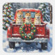 Pegatina Cuadrada Akita Christmas Red Truck Holiday