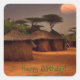 Estos pegatinas de la fiesta de cumpleaños muestran una imagen evocadora de una aldea africana. El texto se puede cambiar o eliminar.