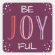 El diseño de la etiqueta navideña o sello de sobre "Be Joyful" moderno presenta un esquema de color rojo burgundy, rojo coral, rosa y púrpura lavanda con puntos blancos nevados.