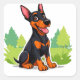 Pegatina Cuadrada Alegre Personalizado Doberman sentado al aire libr