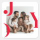 Agrega un toque de encanto moderno de vacaciones con esta calcomanía de foto de Navidad JOY. Con tipografía roja en negrita que enmarca la foto personalizada de tu familia, este diseño minimalista es el toque final perfecto para regalos de Navidad, tarjetas de vacaciones o favores de fiesta.