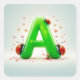 Ilustracion lúgubre de ladybugs adornando una brillante letra verde 'A' con el encanto de los corazones circundantes, mostrando un diseño adorable y caprichoso perfecto para proyectos creativos, inspirados en la naturaleza y alegres.