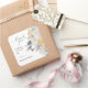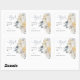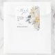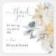 Un agradable pegatina de "gracias" por los favores matrimoniales presenta el mismo diseño floral azul que la suite boda.