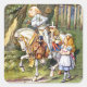Pegatina Cuadrada Alice se reúne con el caballero blanco en el país