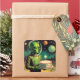 Pegatina Cuadrada Alienígena espacial con Saucer Volador de OVNI de