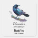 Cumpleaños gracias pegatinas con un hermoso dibujo de acuarela de un cuervo. Los colores azul oscuro y violeta acentúan la belleza de este pájaro.