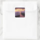 Pegatina Cuadrada Amanecer sobre el puerto de Stari Grad con pesca