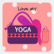 Un diseño divertido con bolso de yoga morado, alfombra, toalla y botella de agua. Las palabras amor a mi pueden ser cambiadas como se desee.