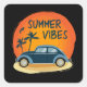 Pegatina Cuadrada ambiente veraniego con coche retro en la playa