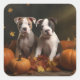 Pegatina Cuadrada American Staffordshire Puppy Autumn Delight