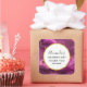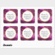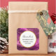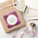 Fiesta gracias pegatinas con un diseño abstracto elegante. Color amatista morado oscuro con cintas de oro enclavadas entre estratos de capas. Diseño rico y hermoso. En la parte superior hay un marco de círculo blanco con un borde de Relieve metalizado de oro falso, con un texto personalizado en el interior.