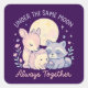 Pegatina Cuadrada amistad, lindos animales del bosque, bajo la luna