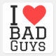Pegatina Cuadrada Amo a los malos