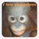Los amantes animales pueden mostrar su amor para los orangutanes, los monos rojos apacibles, con esta foto dulce del orangután del bebé en los pegatinas. Los orangutanes son las especies en peligro cuyo hábitat natural se limita a la selva tropical en las islas de Borneo y (en un grado inferior) de Sumatra. El artista es un miembro y un voluntario con la fundación del orangután en la isla de Borneo. Ella la dona los beneficios para apoyar el rescate y la rehabilitación de orangutanes dejados huérfano y abusados.