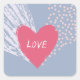Amor escrito en un corazón rojo con un agradable fondo. Este diseño parece realmente efectivo para estos Pegatinas