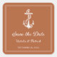 Pegatina Cuadrada Ancla Náutica de Naranja Quemada Salva la Fecha