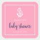 Pegatina Cuadrada Anclaje Baby Shower de guion rosa y azul