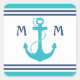 Pegatina Cuadrada Anclaje Turquesa Náutico Corazón