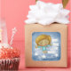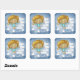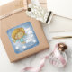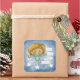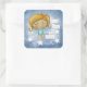 Un ángel caprichoso y lindo vestido de azul sostiene un hilo que se estira a través de cuatro estrellas. La leyenda dice: "Ella colgó las estrellas". fondo lleno de constelación azul bonito. Diseño original de Christie Black de Creations from the Heart.