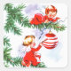 Encantadores pegatinas de Navidad añejos con dos lindos ángeles decorando el árbol de Navidad.