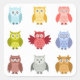 Pegatina Cuadrada Animales del Bosque Búhos en Fila