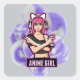 Pegatina Cuadrada Anime Girl | Cute Aesthetic Character Illustration