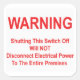 Pegatina Cuadrada Apagar el interruptor NO desconectará la alimentac