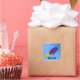 Un pegatina divertido para los chicos. Un barco de cohetes azul con acentos rojos y verdes estallando en el espacio exterior. Cielo azul y estrellas pequeñas.