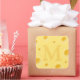 Este es un cuento de cuentos al estilo de un queso que es un hermoso amarillo cremoso y plagado de agujeros. Un monograma personalizado con un falso efecto grabado en relieve añade un toque de elegancia a este pegatina cursi