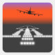 Pegatina Cuadrada Aproximación del avión al atardecer Luces de pista