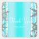 Pegatina Cuadrada Aqua Azul y Copos de Nieve de Invierno Plateados F