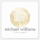 Coordenadas con el entrenador de vida de árbol acuarela dorada, plantilla de tarjeta de visita de consejeros a las 12.00 horas. Un círculo acuático de color dorado que contiene un simple árbol blanco con hojas es el diseño visual perfecto para acompañar tu nombre o nombre comercial en estos pegatinas personalizados. Ideal para sellar sobres, para usar como etiqueta de producto en envases o contenedores, o para personalizar los suministros de oficina. © 1201AM CREATIVE