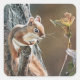 Pegatina Cuadrada Arbol de encino rojo de la ardilla Otumn Watercolo
