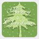 Pegatina Cuadrada Árbol verde de Navidad con estrellas