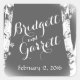 Blanco y gris, abedules de invierno inspirados en la pizarra y pegatina con copas de nieve con nombres de pareja y fecha boda.
