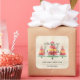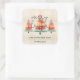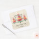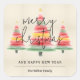 Hermosos acuarelas árboles de Navidad coronados por una estrella dorada con rayas de marfil acentúan a estos pegatinas cuadrados con Feliz Navidad, Feliz Año Nuevo y tu nombre con letras de moda. COINCIDIENDO elementos de nuestra colección.