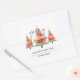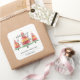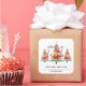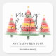Hermosos acuarelas árboles de Navidad coronados con un acento de estrella dorada a estos grandes pegatinas cuadrados con Feliz Navidad, Feliz Año Nuevo y tu nombre con letras de moda. COINCIDIENDO elementos de nuestra colección.