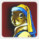 Pegatina Cuadrada Ardilla De Arte Barroco Holandesa Con Remolque De