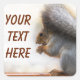 Pegatina Cuadrada Ardilla en un banco y algunas nueces