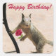 Pegatina Cuadrada ardilla sujeta una tarjeta de felicitación de cump