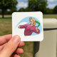 Pegatina Cuadrada Arrojando Un Boomerang