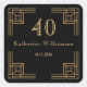 Pegatina Cuadrada Art Deco Birthday Black Gold Roaring 20's